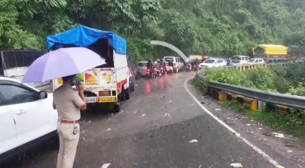 लगातार हो रही बारिश के चलते गुलाब घाटी क्षेत्र में सड़क पर मलवा आने से यातायात बाधित