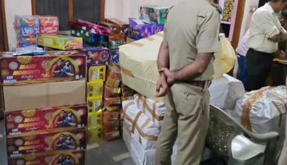 दिवाली से पहले प्रशासन ने रिहायशी मकान से भारी मात्रा में पटाखों का भंडारण बरामद कर धमाका किया अवैध कारोबार का