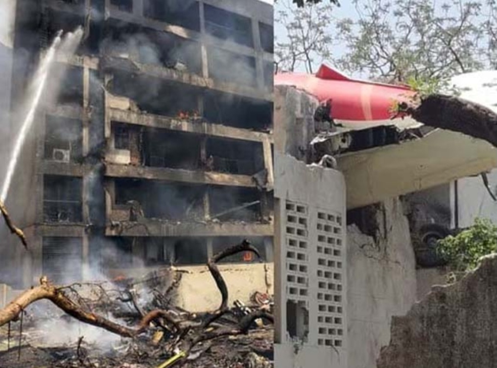 विमान का एक बड़ा हिस्सा इमारत की पांचवीं मंजिल और कैंटीन से टकराया, जहां शुरुआती रिपोर्टों के अनुसार कुछ लोग भोजन कर रहे थे। टक्कर के बाद तेज धमाका हुआ जिससे भयंकर आग लग गई और काले धुएं का गुबार आसमान तक उठता दिखा। राहत की बात यह रही कि विमान इमारत के ऊपर फटा नहीं, जिससे और बड़ा नुकसान टल गया।
