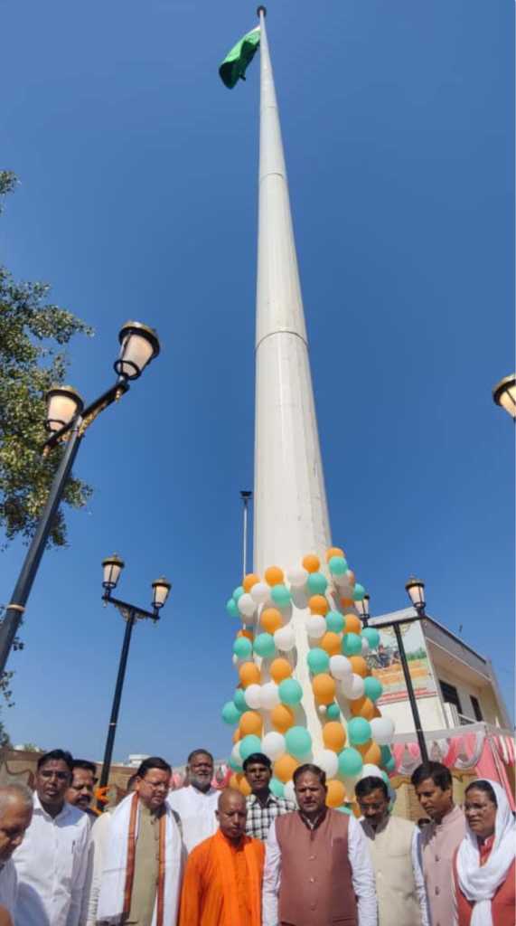 खटीमा। यहां कंजाबाग तिराहे पर 47.42 लाख रुपये की लागत से लघु सिंचाई विभाग द्वारा निर्मित 215 फीट ऊंचे राष्ट्रीय ध्वज का विधिवत पूजा-अर्चना के साथ मुख्यमंत्री ने लोकार्पण किया।