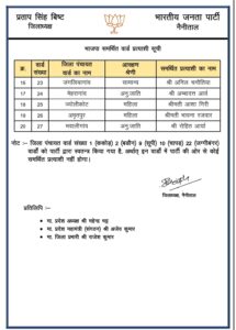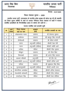 उत्तराखंड। राज्य में पंचायती चुनाव का बिगुल बजने के साथ ही तैयारियां भी जोरों पर हैं। जहां एक तरफ प्रत्याशी अपने अपने क्षेत्र में पूरे जोश के साथ प्रचार में जुटे हैं, वहीं तमाम राजनीतिक दल भी पार्टी बहुमत के गठजोड़ में जुट गईं। इसी सब के बीच भारतीय जनता पार्टी ने नैनीताल, ऊधम सिंह नगर, अल्मोड़ा, रानीखेत और चंपावत जिले में समर्थित उम्मीदवारों की घोषणा कर दी है। बुधवार को पार्टी की ओर से जारी की गई सूची- देखें..