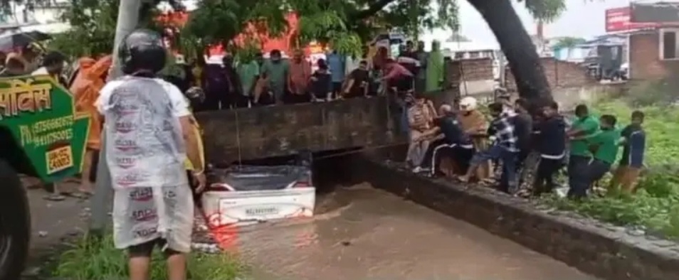महोत्सव से लौट रही बस के अनियंत्रित होकर दुर्घटनाग्रस्त होने से 7 लोग घायल