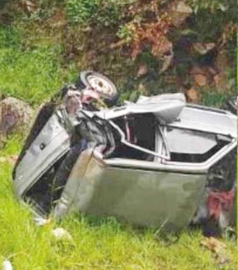 कार के अनियंत्रित होकर खाई में गिरने से दो महिलाओं सहित तीन लोगो की मौत के साथ ही युवती सहित तीन लोग घायल