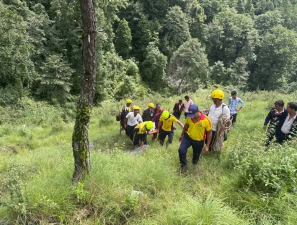 विवाह समारोह से लौट रहे लोगो की कार के अनियंत्रित होकर गहरी खाई में गिरने से एक महिला की मौत के साथ पांच गंभीर घायल