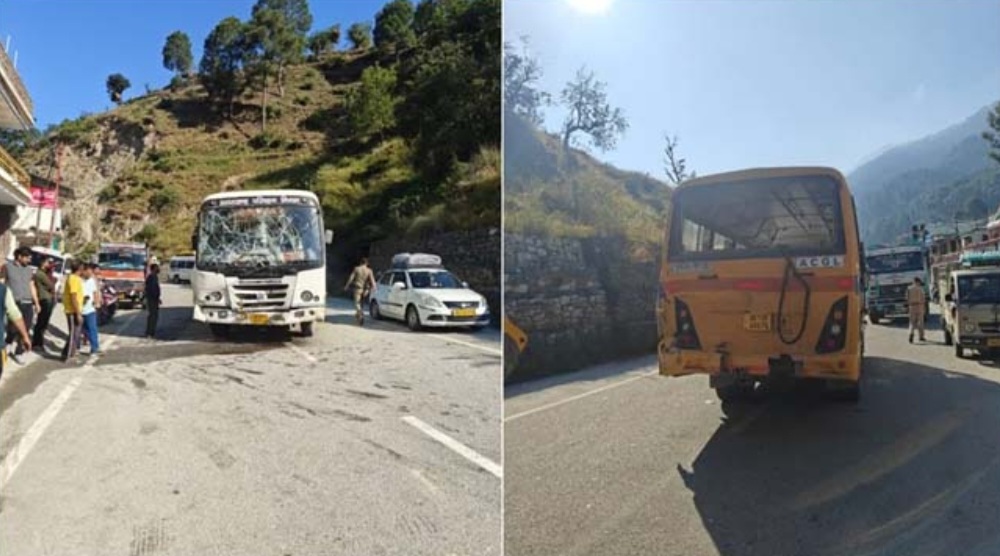 यमुनोत्री राष्ट्रीय राजमार्ग पर स्कूली बच्चों से भरी बस को रोडवेज बस ने मारी टक्कर, हल्की चोटों के साथ सभी बच्चें सुरक्षित