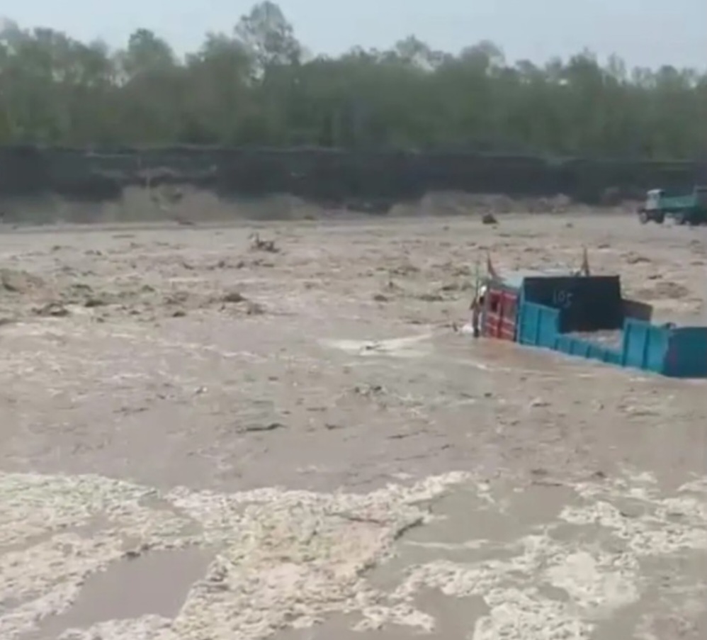हल्द्वानी। लालकुआं विधानसभा क्षेत्र के अंतर्गत नंधौर नदी में शनिवार (आज) अचानक पानी आ गया, जिससे नदी में खनन कार्य में लगे मजदूरों और वाहन चालकों के बीच अफरा-तफरी मच गई। मजदूरों ने जान बचाने के लिए दौड़ लगाई, जबकि खनन में लगे कई डंपर और मशीनें नदी के बीच ही फंस गईं।